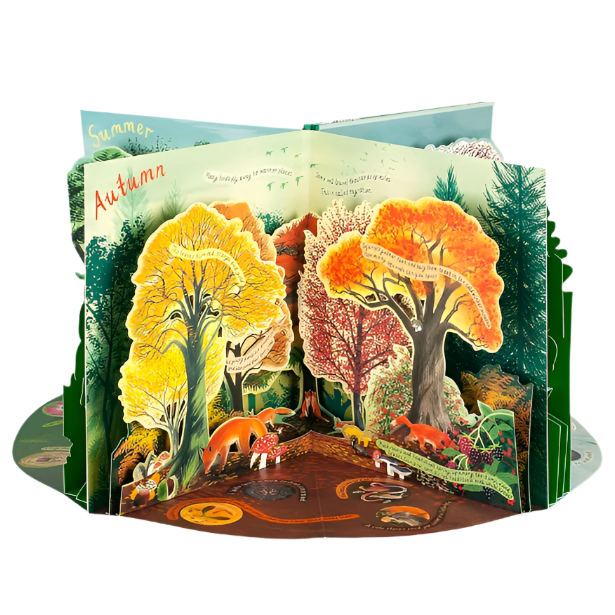 The book opens out into a stunning four-part carousel, revealing intricately detailed pop-up scenes of spring, summer, fall, and winter. Follow a family of foxes as the tiny cubs grow up through the year, and explore the woodland scenes to discover a world of animals, trees, plants, and flowers.