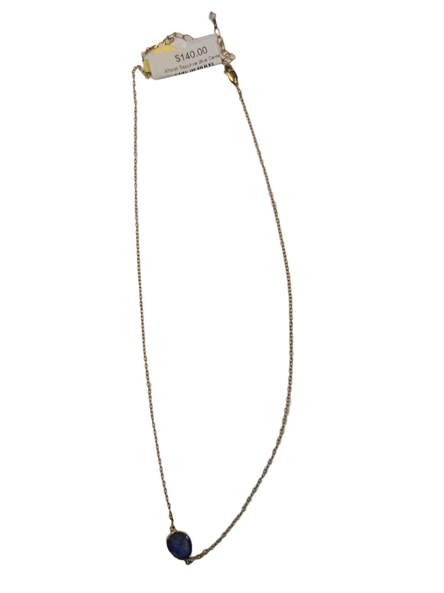 African Sapphire Blue Center Stone Necklace Gold Fill