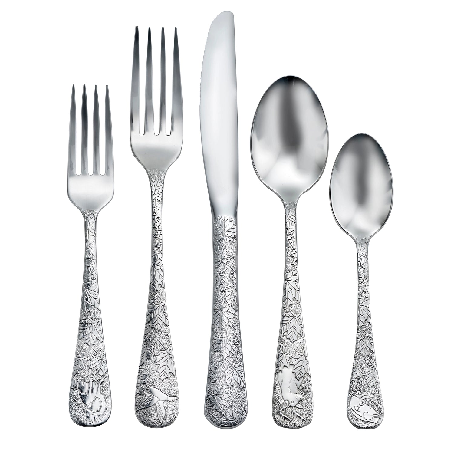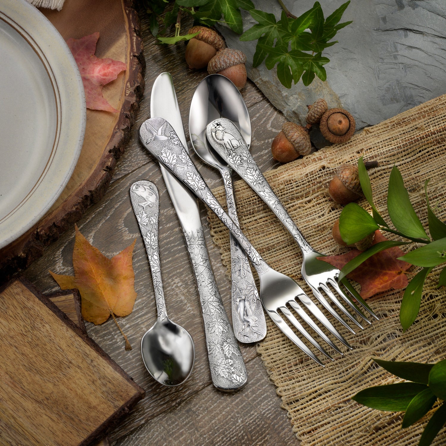 Celebrate Mother Nature with Liberty Tabletop! Our American Outdoors flatware pattern is designed to honor all the wonderful creatures found under the beautiful for spacious skies of our majestic country. Revel in the great outdoors from sea to shining sea with Liberty Tabletop and American Outdoors flatware! Like all Liberty Tabletop flatware, this silverware is designed, manufactured, packaged, and shipped in the USA!