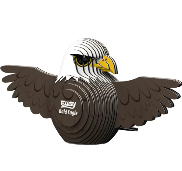 EUGY - a super-fun 3D puzzle that's eco-friendly and can be assembled in 10 to 20 minutes! Assemble this proud Bald Eagle puzzle and experience the magic of EUGY! This collectable toy is great for STEM concepts and craftable fun. It's sure to delight kids and adults alike! There are over 90 designs and counting for you to collect and enjoy!