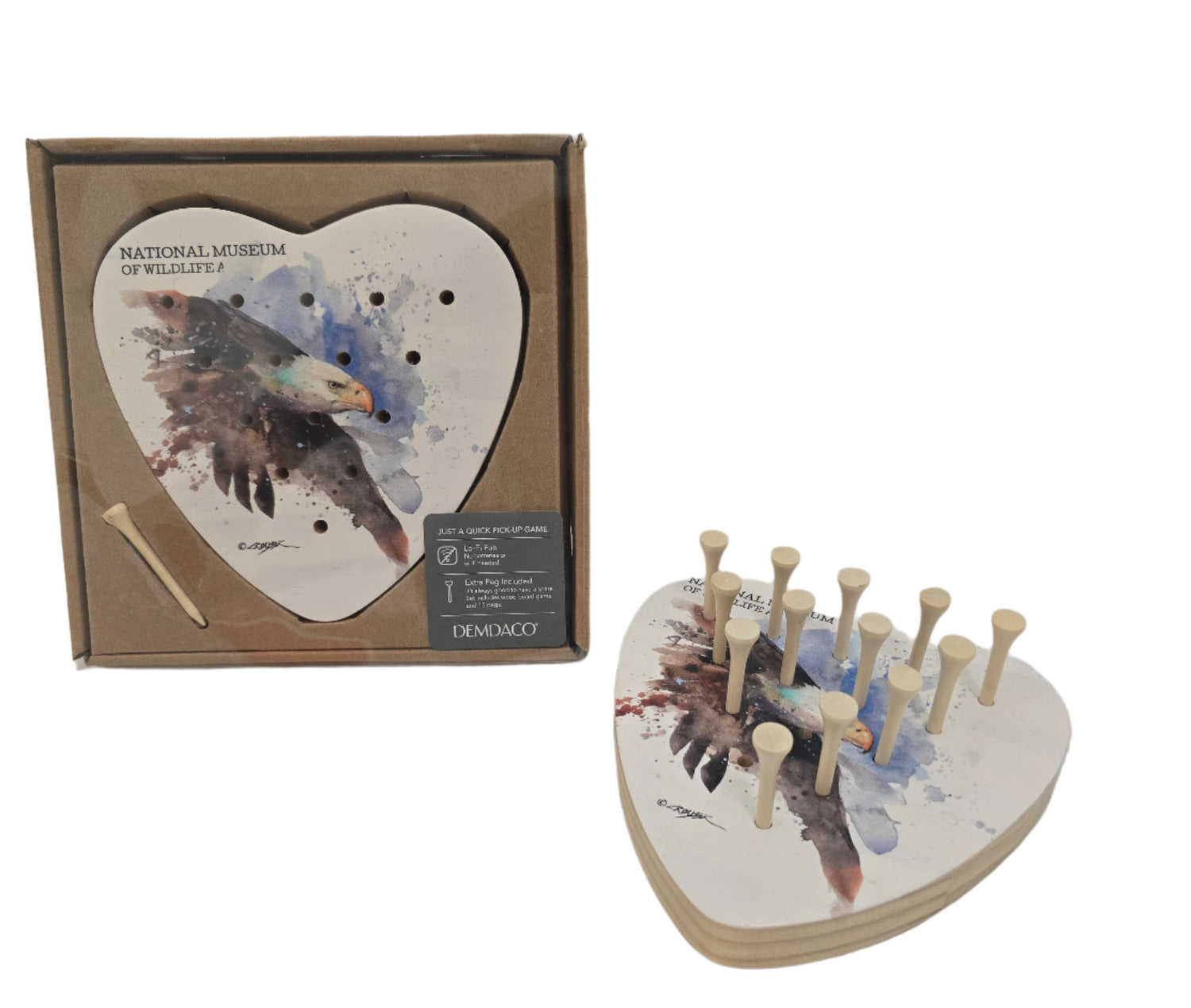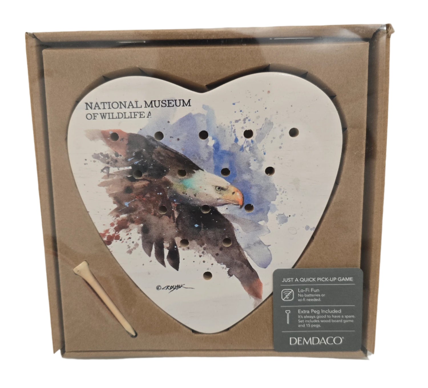 A unique take on a classic favorite! This gorgeous heart shaped board features the National Museum of Wildlife Art name and a whimsical image of a bald eagle. The perfect on-the-go game to provide countless hours of fun for the whole family.