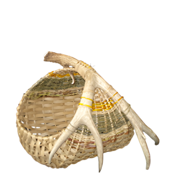 Baskets woven with naturally gathered material collected locally in the Jackson Hole area with white tail deer antlers.