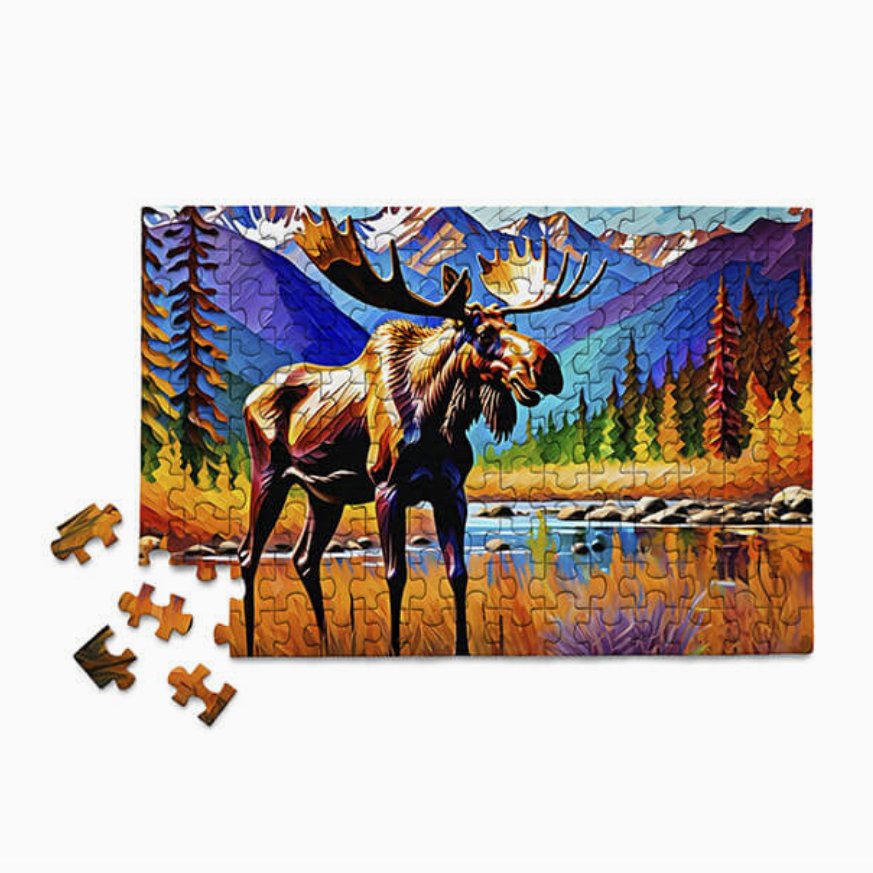 Colorful Moose Wildlife Forest Mini Jigsaw Puzzle Tube Gift