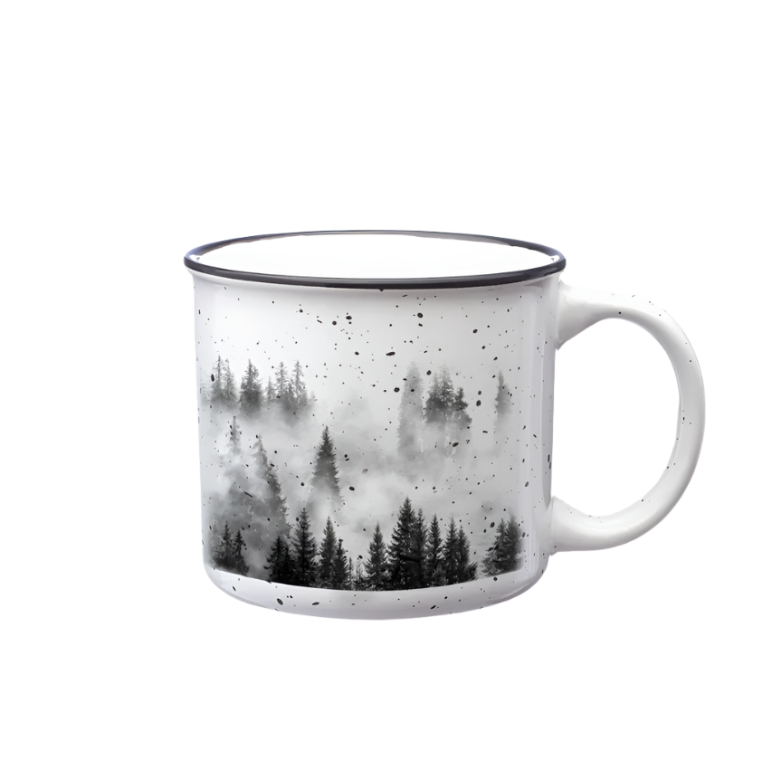 This nature themed mug showcasing a wrapping print of a forest that is mixed in with some clouds passing through it during a storm! The image is bumped up in contrast to really pop the trees and it creates and eye-catching pattern of trees and mist! This mug is a great mug for anyone who enjoys the outdoors and is the perfect gift to bring in some nature to any tabletop! Use our mugs in your RV, for your next camping trip or use at home as a souvenir of your last trip or mountain vacation get away.
