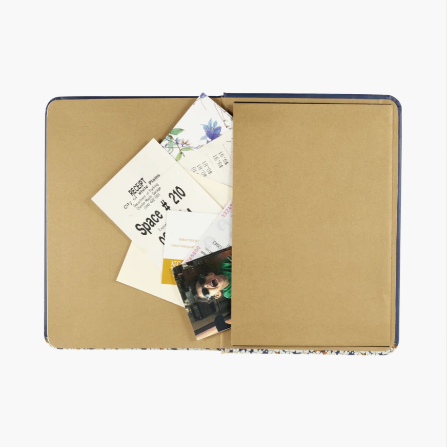 Tuck notes, mementos, and more within the pocket inside the back cover.