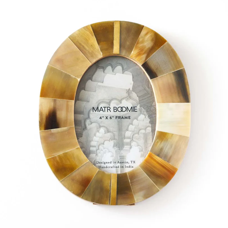 Kachhua 4x6 Oval Picture Frame - Horn, Brass Inlay