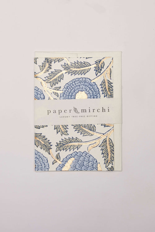 Luxury hand block-printed greeting card with block-print lined envelope. All our products are made using 100% recycled tree-free cotton rag paper.