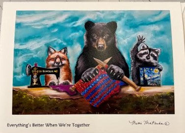 "Everything's Better When We're Together" is a painting that I did to help bring folks to a large art fair, here in Bozeman, Montana. It was the Bozeman MADE Fair, which featured over 200 artisans. I was so pleased to create this wonderful trio that is such a joyful image. I'm very proud of this piece and hope it brings you as much joy as I had in creating it. The original is a soft pastel on a birch board.