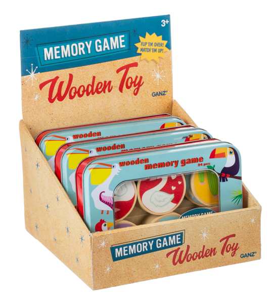 Memory game with wooden bird tokens.
