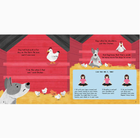 Dog has been having fun bounding around all day and doesn’t want to go to bed! With the help of his farmyard friends, from Hen tucked up in her coop to Cow in her shed, Dog learns 13 bedtime yoga poses to help him settle down to sleep.